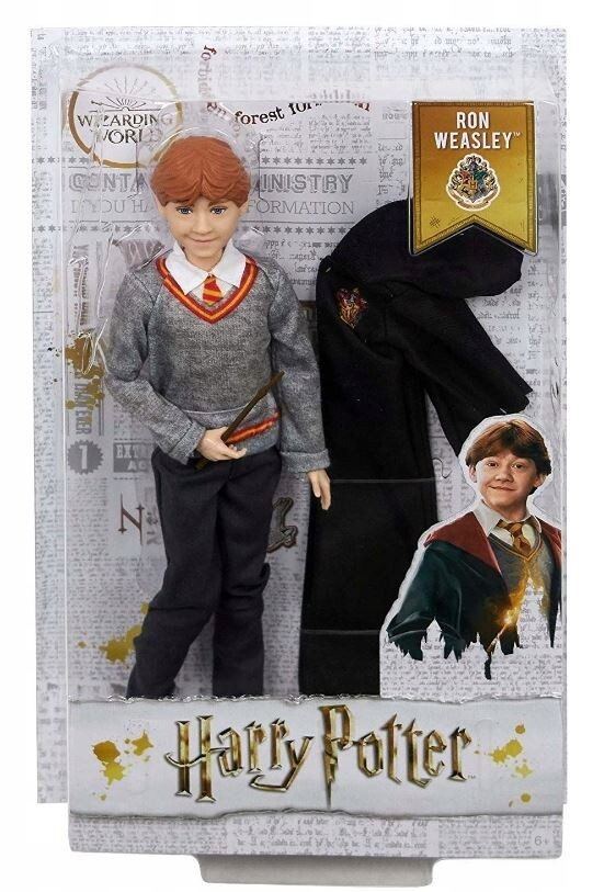 Magia prinde viață cu această păpușă articulată Ron Weasley, realizată fidel după personajul din filmele Harry Potter. Ron poartă uniforma clasică Gryffindor, completată de mantaua școlii și bagheta sa magică, perfectă pentru a recrea cele mai faimoase vrăji.