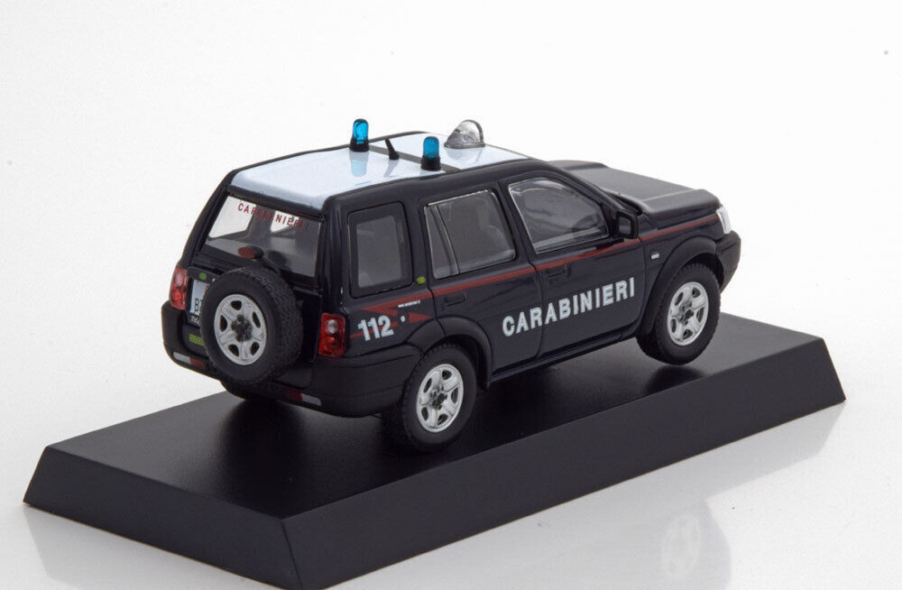 Aceasta macheta Land Rover Freelander Carabinieri 2003 reproduce un SUV folosit de fortele de ordine italiene incepand cu inceputul anilor 2000. Modelul reflecta fidel designul robust si caracterul versatil al vehiculului, fiind ideal pentru interventii urbane si rurale.