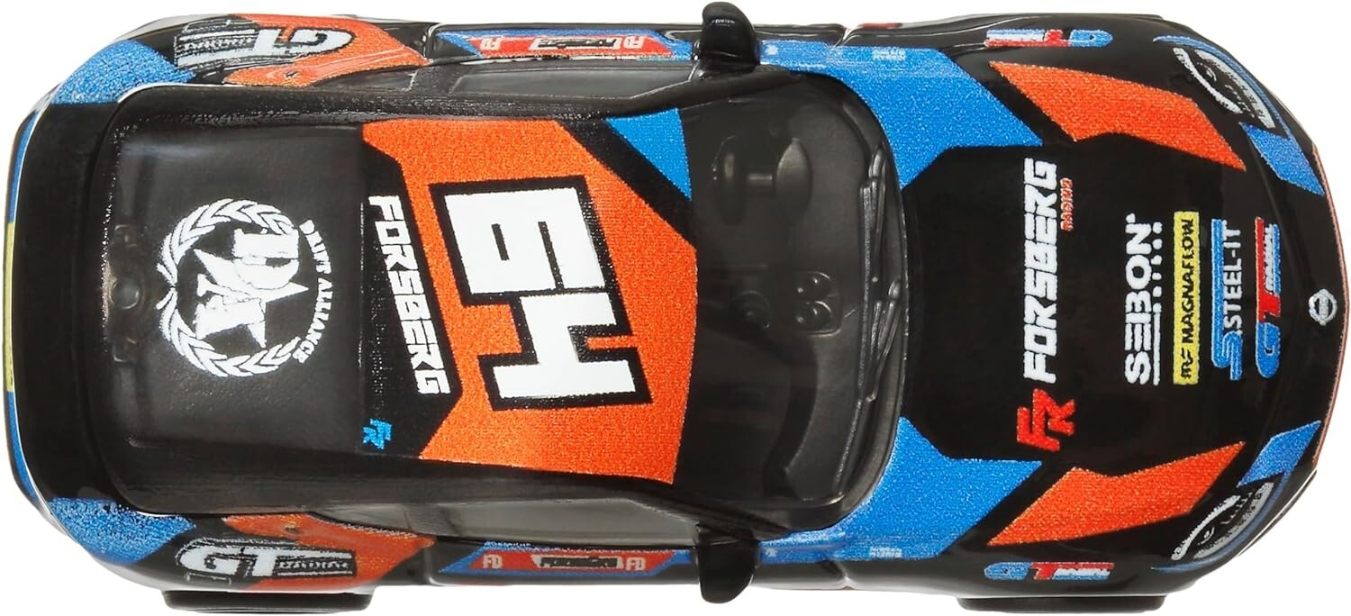Modelul este construit din metal, avand roti Real Riders si decor specific seriei Car Culture. Combinatia de culori negru, albastru si orange ofera un aspect dinamic si modern, perfect pentru colectionari si pasionati auto.